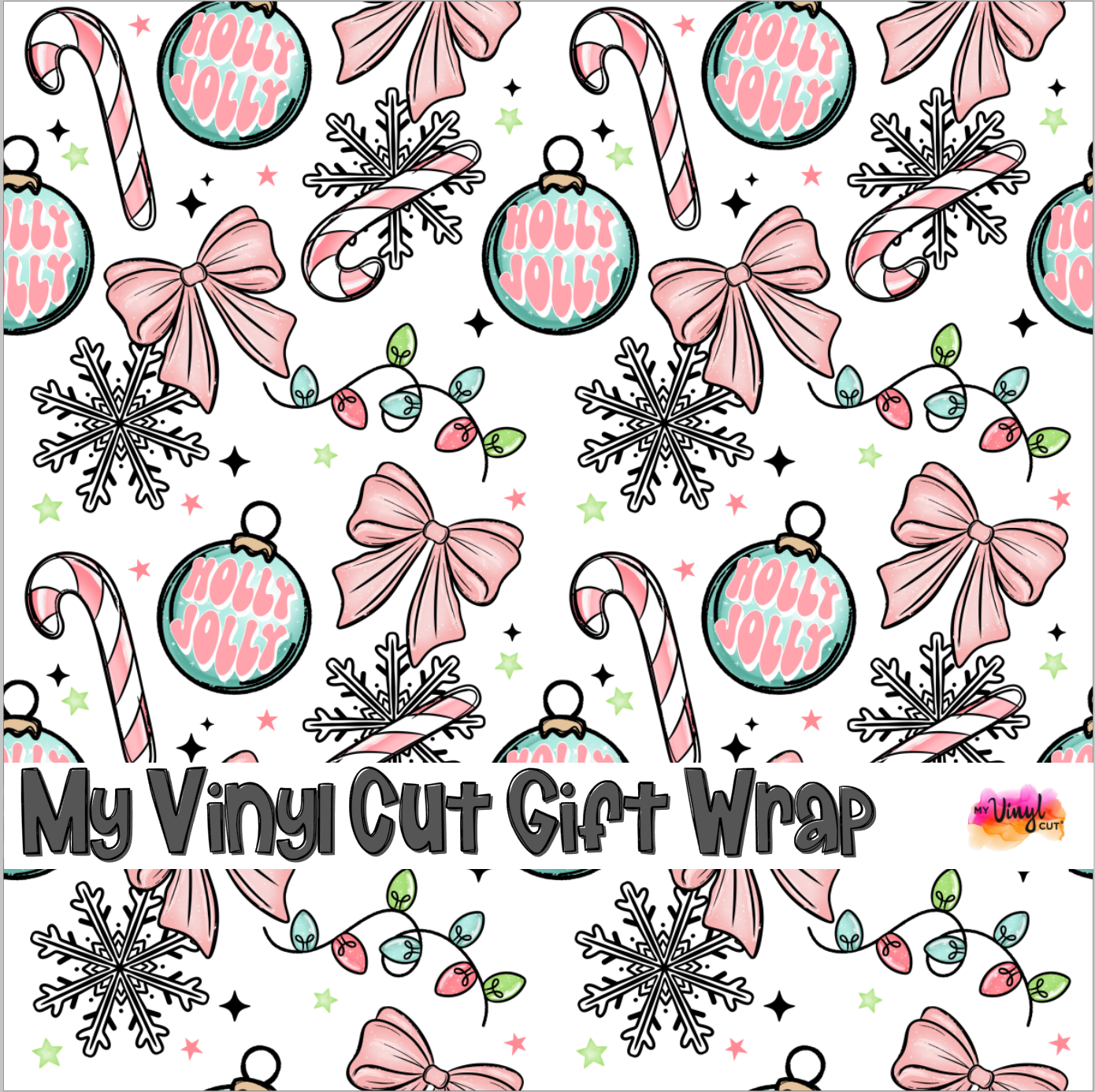 Christmas Gift Wrap Printed Wrapping Paper Holly Jolly Ornaments