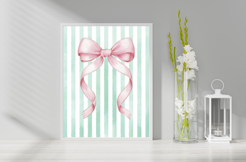 Poster | 16 x 20 | inches | Light Pink | Watercolor Striped Background | Green Bow