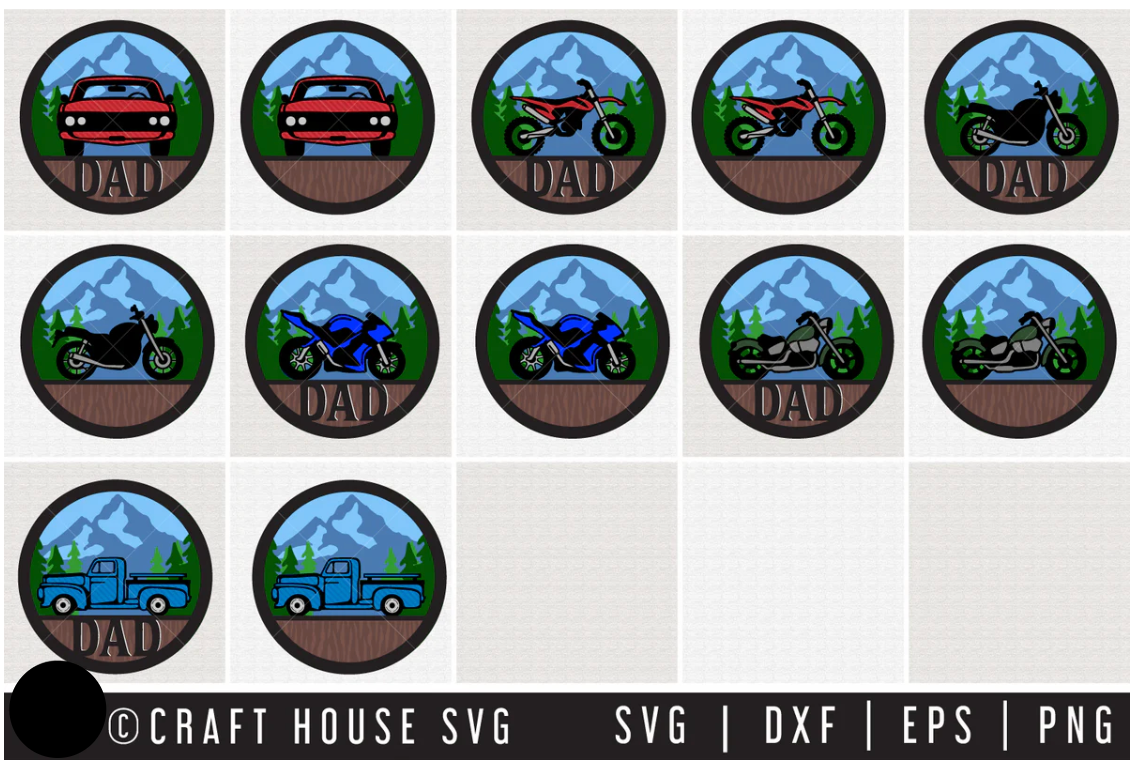 3D Layered Car Truck Motorcycle SVG Bundle