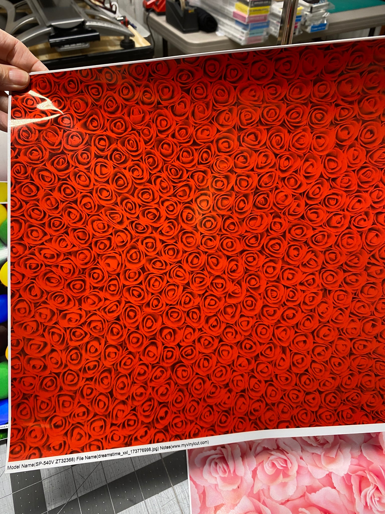 printed on a Roland commercial printer using waterproof, eco-solvent inks (not tested with epoxy or other chemicals, request a complimentary scrap if you need to test it).