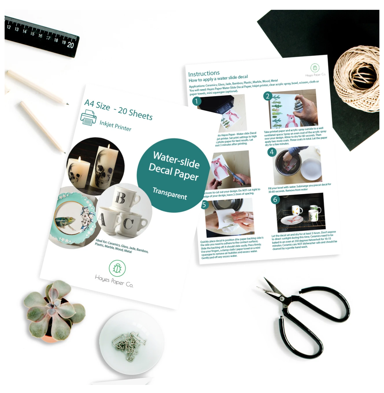 Hayes Clear Inkjet Waterslide Decal Paper is ideal for all your craft projects. Personalize and customize your project by printing unique designs on our decal paper. Transfer decals onto ceramics, glass, jade, metal and plastic materials.