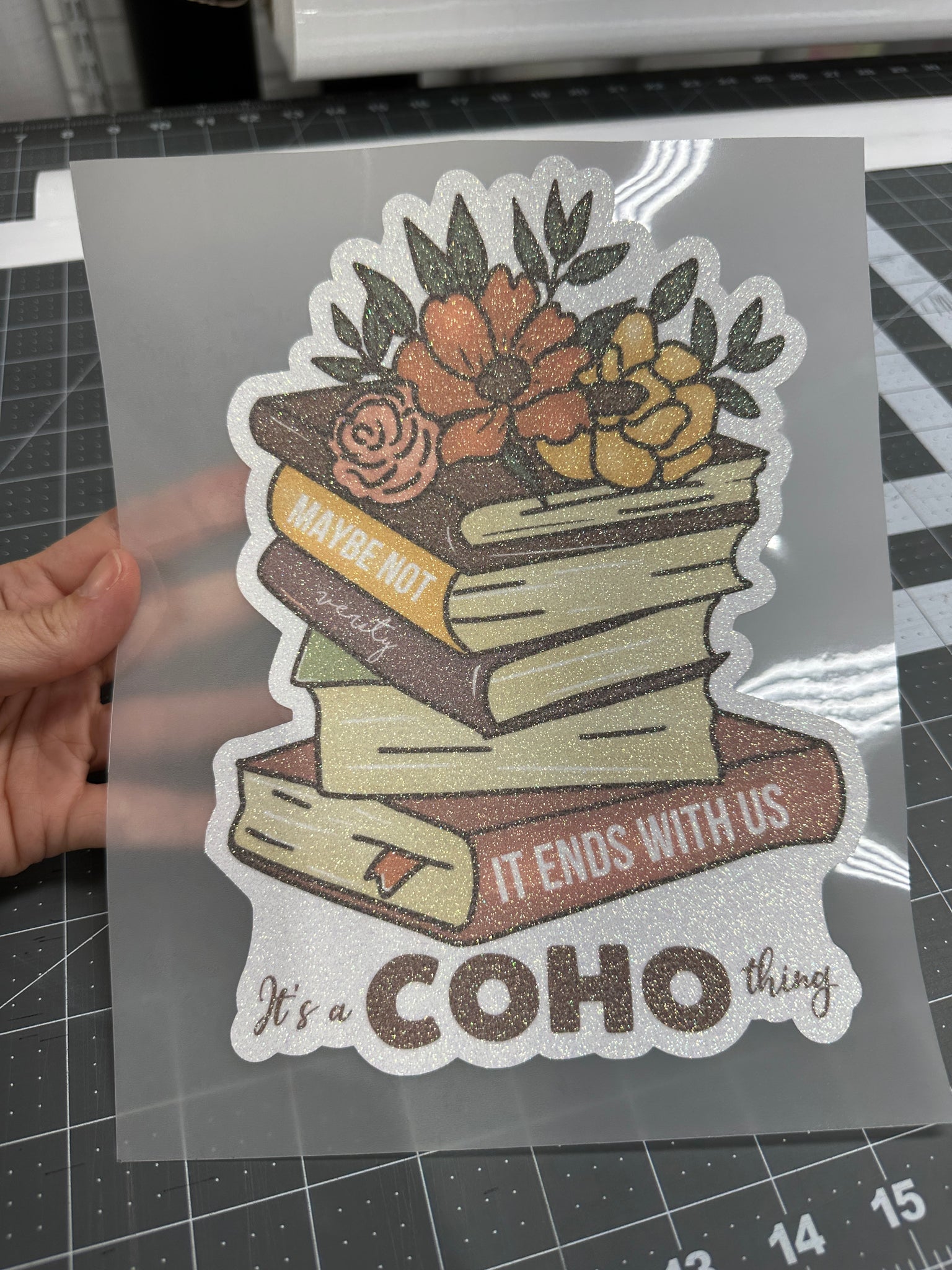 White Textured HTV: Printed on Textured White Glitter HTV on the face so the adhesive is face down on the carrier so you cut this the way you cut adhesive vinyl. DO NOT MIRROR. Will have a white border around the edge and white in between all the details. Printed on either Stahls or Siser printable htv. Heat Mask the size of the image will be included for free per 8 pcs. It is reusable. I also sell 12 x 12 inch sheets here on my website. Instructions include