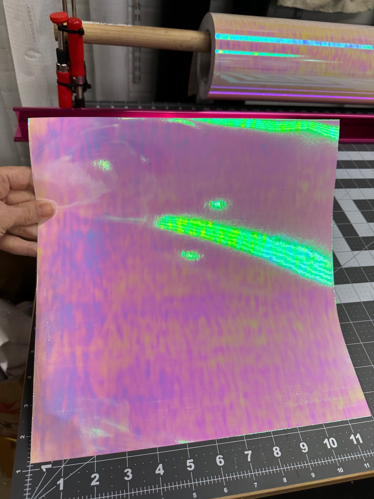 Holographic Pink Opal Laminating Sheets 4 x 12, 6 x 11, 8 1/2 x 11, 12 x 12 inches for Cold Laminating Sticker Overlay