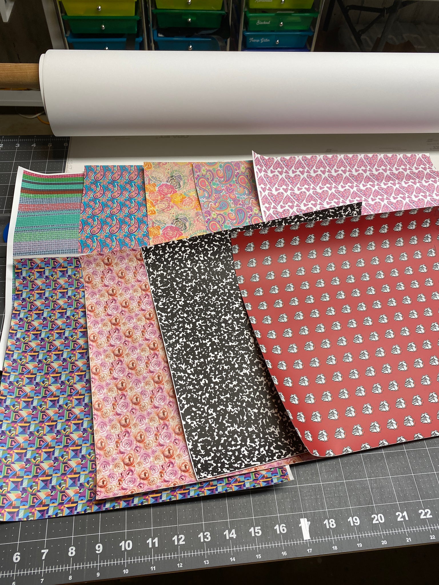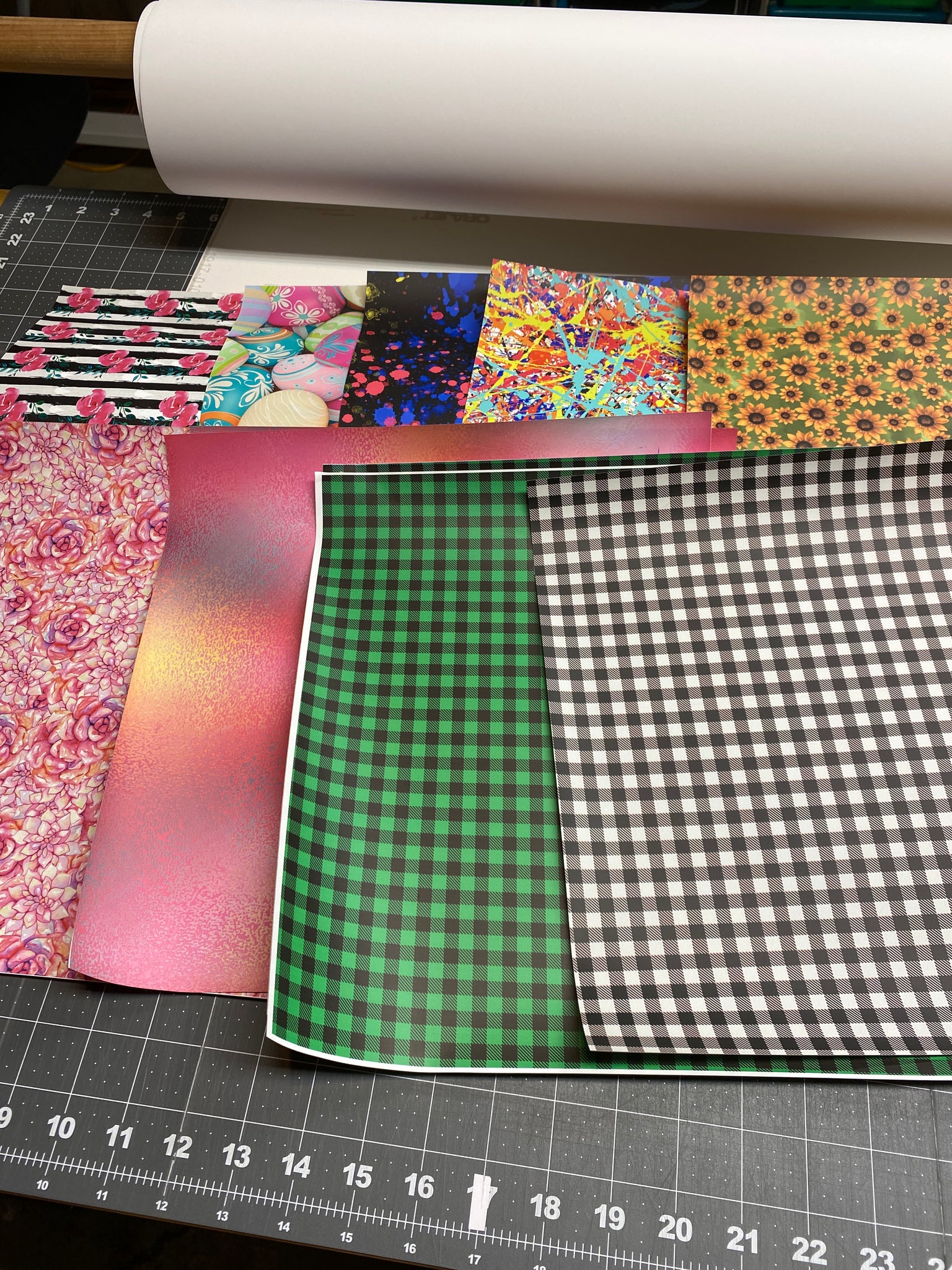 12 x 12 inch sheets of printed heat transfer vinyl printed on Express Print by Stahls.